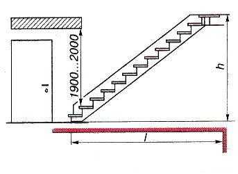 Размер проема в перекрытии определяется исходя из минимально допустимого значения для прохода человекаДлина косоура