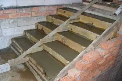 - необходим фундамент, так как имеют большой вес. Избежать перекосов, разломов поможет крепкое основание. Выкопайте котлован глубиной 60-70 см. На дно засыпьте слой песка и щебня. Постройте опалубку из дерева в соответствии с высотой ступеней. Заливку цемента проводят одновременно на всех уровнях для равномерного застывания;