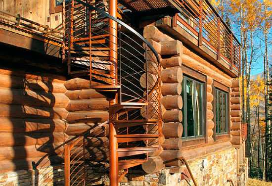 Если перед домом совсем нет места, то винтовая лестница – единственный вариант организовать удобный подъем в дом