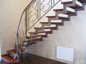 Потом поверх металла можно соорудить деревянные поручни. В перилах обычно применяют элементы ковки. Для покраски лестницы применяется молотковая краска.