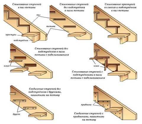 - Крепление к тетиве. Это еще один вид направляющих опор, только в отличие от косоуров монтаж ступеней осуществляется не сверху опор, а между ними. Чтобы придать конструкции большей надежности, в тетивах выпиливают специальные отверстия, после чего в них вставляют торцы ступеней.