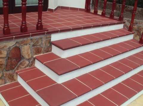 - Бетонные сооружения не обходятся без последующей отделки, благодаря чему приобретают привлекательный экстерьер. Чаще всего для оформления входа перед террасой применяют керамогранит или клинкерную плитку.