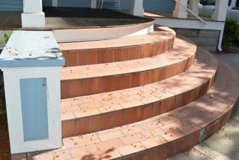 - Кирпич. Обустройство входа на крыльцо при помощи кирпича не требует специальных навыков или оборудования. Относится к средней категории с позиции трудоемкости и дороговизны.