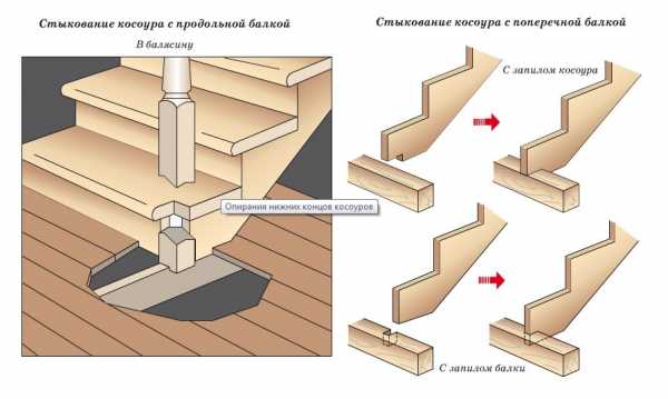 - На косоурах. В этом варианте ступени накладываются на опорную балку.