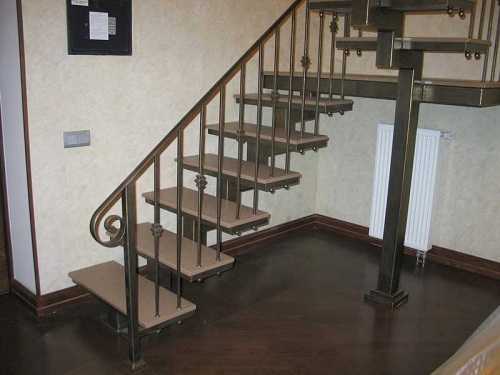 - маршевые – имеют более сложную конструкцию, которая подразумевает монтаж ступеней на балках, установленных под определенным углом. В качестве опорных элементов могут выступать тетивы или косоуры. Такие металлические изделия вполне под силу выполнить хозяевам частного дома своими руками;