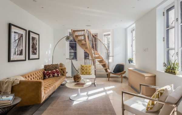 Использование винтовой лестницы позволяет выделить несколько тематических зон (столовую и гостиную, спальню и детскую комнату), тем самым визуально увеличив свободное пространство. В большинстве случаев лестницу помещают в центр помещения, но здесь стоит быть осторожным. Следите, чтобы конструкция не закрывала окна и не затемняла одну из зон.