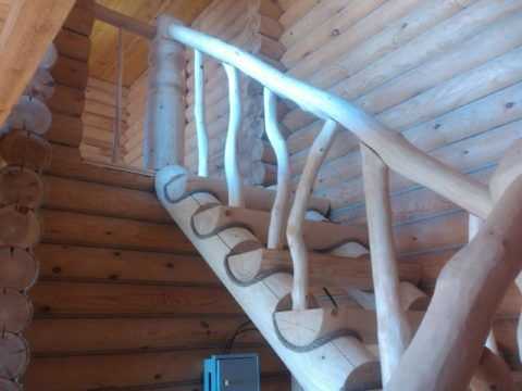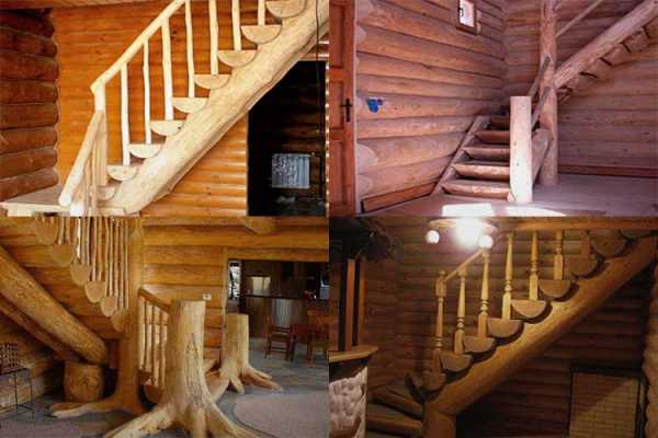 Деревянные лестницы из бревна: как их делают