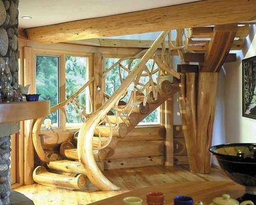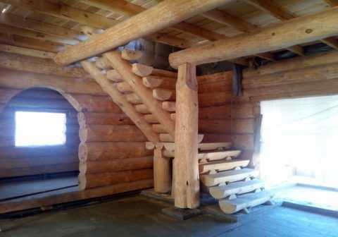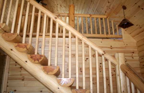 Как соорудить лестницу из бревна на второй этаж