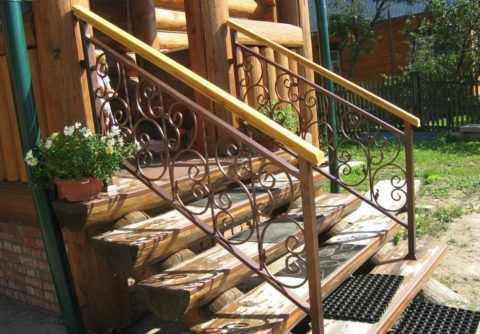 Лестница из лиственницы с ограждением из ковки
