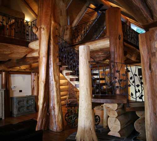 Лестница в доме из бревна фото: