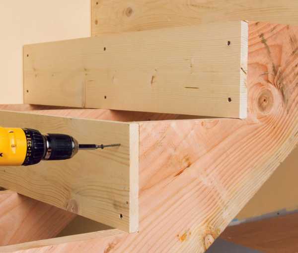 - Монтаж ступеней (ступени крепятся с помощью саморезов или врезаются в косоуры).
