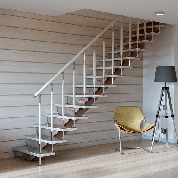Прямая лестница дешевле других типов лестниц, таких как винтовые или кольцевые. Это связано с тем, что процесс строительства намного проще и занимает меньше времени.