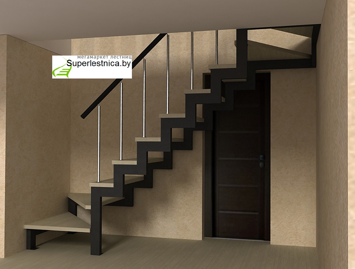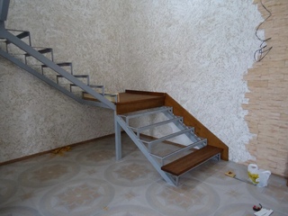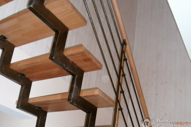 В том случае, если лестница сделана возле стены, то для придания конструкции, жесткости один косоур приваривают к кронштейнам, которые закреплены на стене.