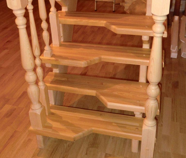 Ступени выполнены из плотных пород деревьев, способных выдерживать значительные нагрузки: