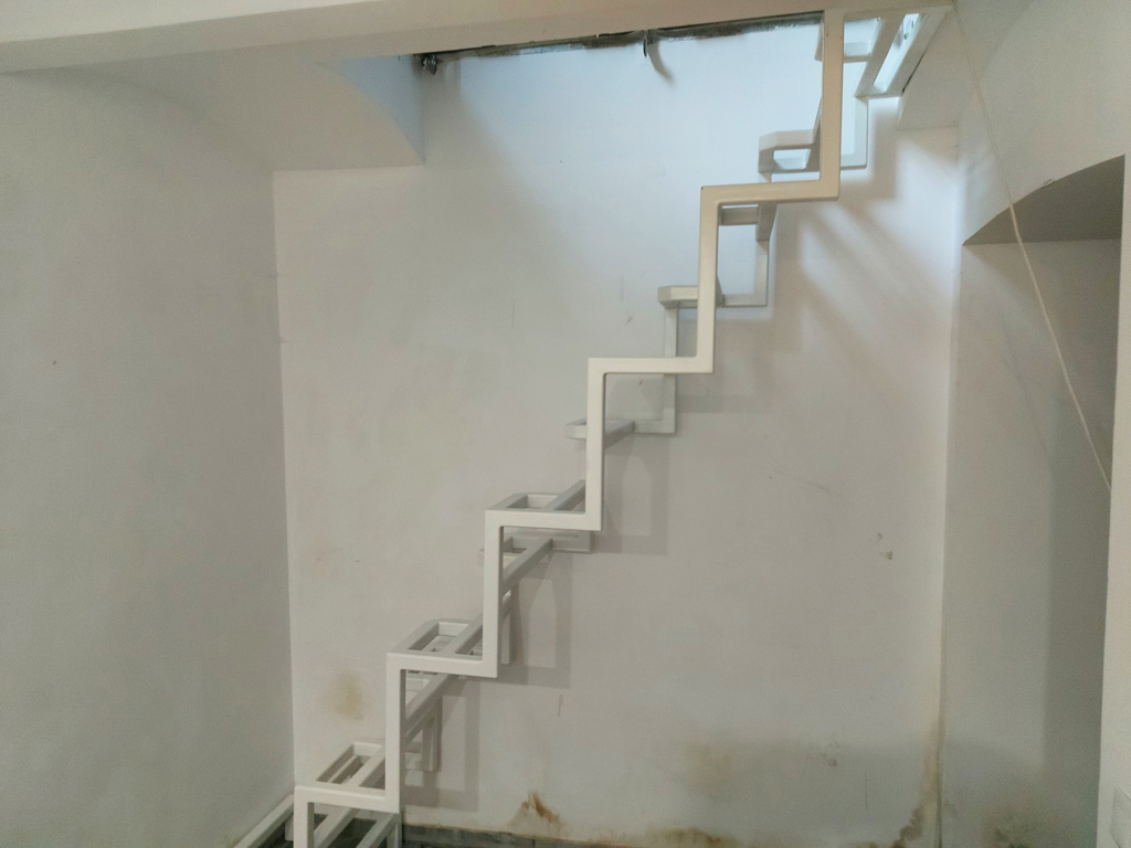 На металлический каркас приваривают прямые короткие проступи, одинаковые по всей длине, в виде педалей. Чем шире ступени, тем удобней подъем, но больше места нужно отвести для лестницы.