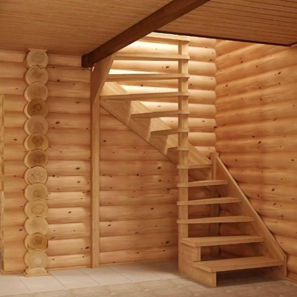 Пример конструкции поворотной лестницы в бане