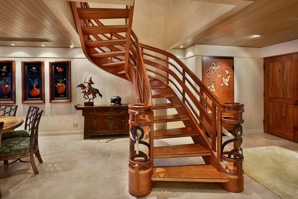 Пример безопасной для детей лестницы, обшитой экологичными материалами.