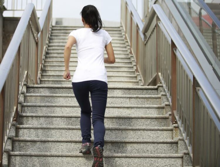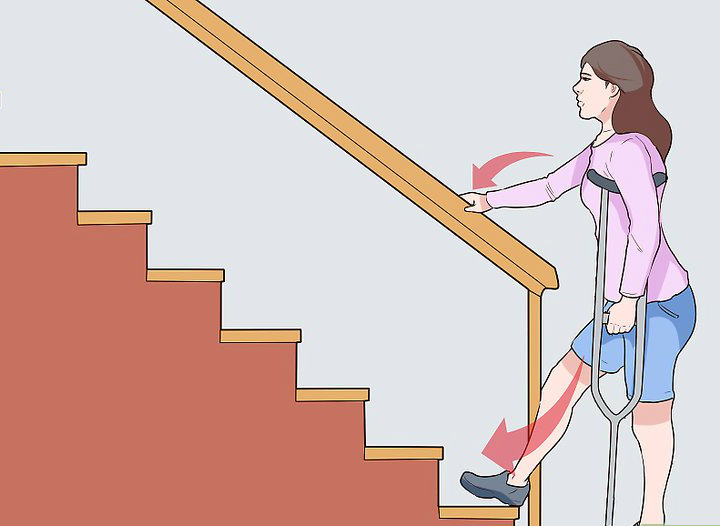 Люди, пересекающие лестницу, могут использовать поручни для устойчивости во время ходьбы.