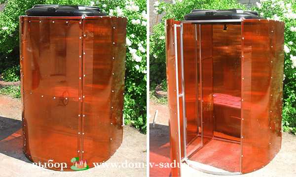 - На одной из стенок устраивается дверь на петлях, которую можно заменить шторкой из полиэтиленовой пленки.