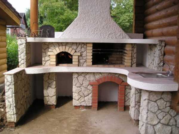 Если предполагается построить летнюю кухню в виде домика, в ней можно сложить капитальную печь из огнеупорного кирпича — с различными отделениями и дополнительными приспособлениями.