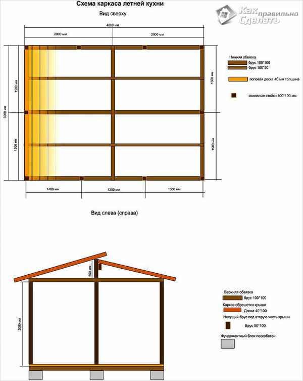 Схема для монтажа крыши беседки с летней кухнейОсобенности оборудования мангала