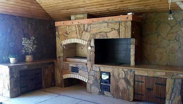 В случае если сооружается печь, ее обычно тоже облицовывают камнем. Малые денежные затраты делают обустройство летней кухни открытого типа недорогим.
