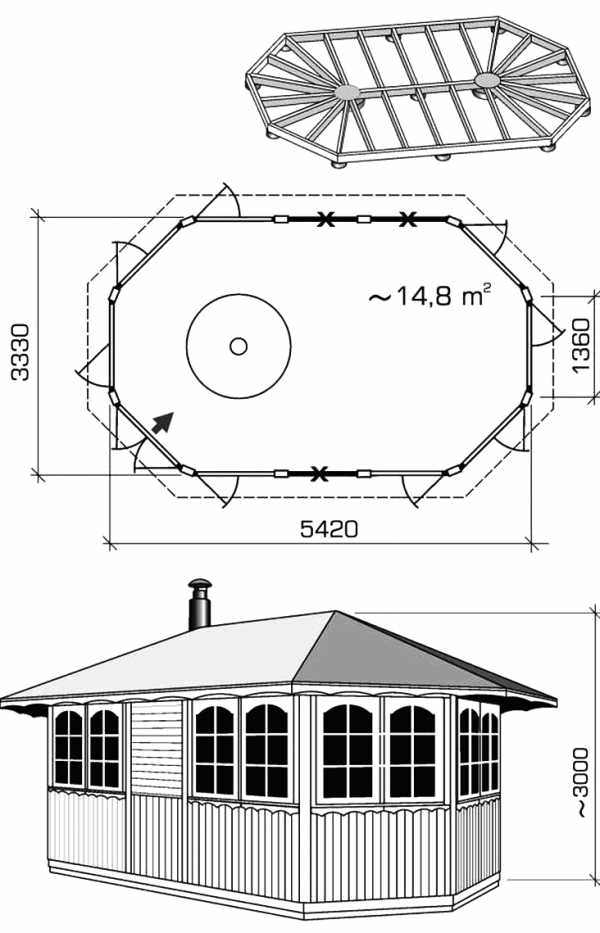 Важно: крыша в открытом сооружении должна выходить за пределы строения – так она максимально спасет вас от косого дождя.