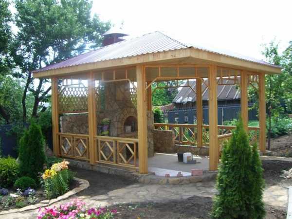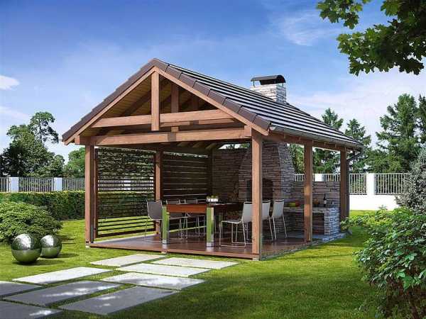- Цели использования. Если вы будете готовить и отдыхать только в летний период, то подойдет открытый вариант. Если нужно использовать строение и в прохладную пору, то лучше выбрать конструкцию закрытого типа и предусмотреть в ней наличие камина для быстрого обогрева помещения;