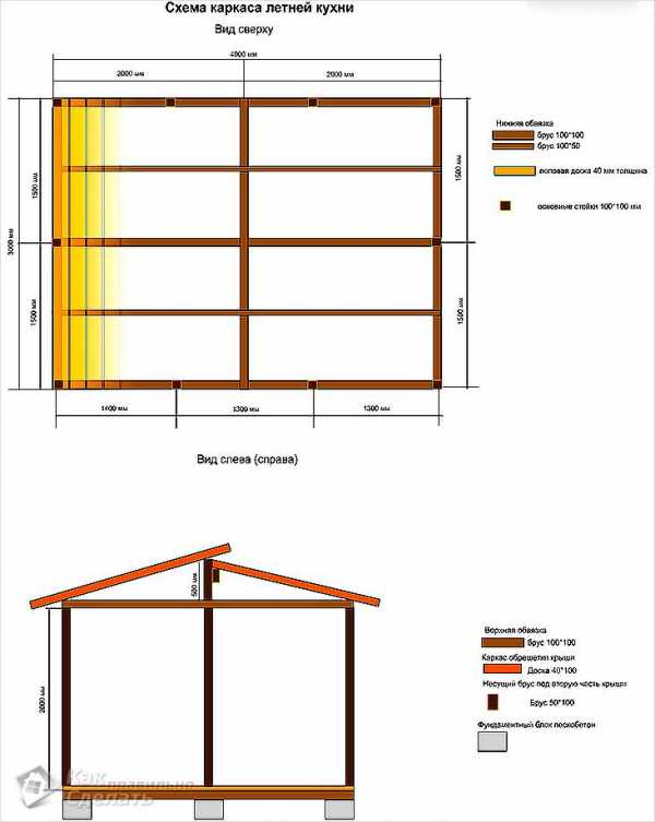 Схема каркасной летней кухни