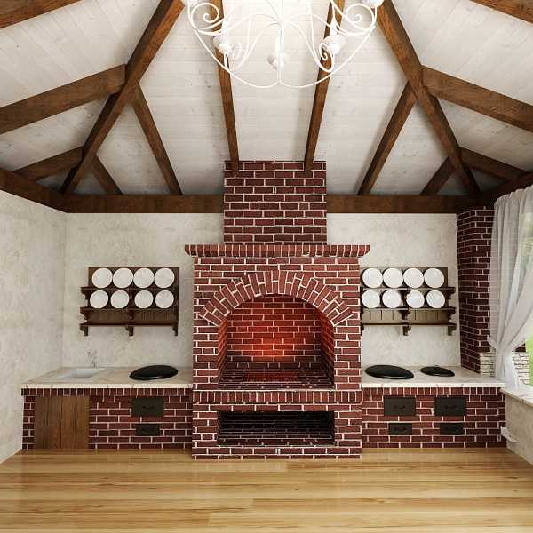 - тип используемого очага — дровяная печь для летней кухни, электроплита или камин;