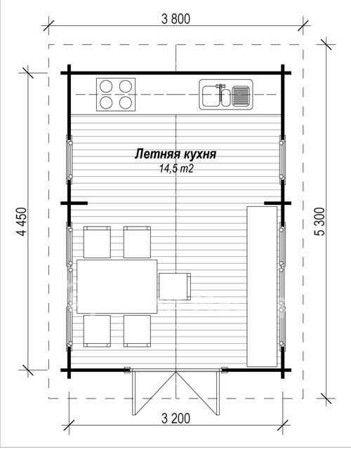 Чертеж прямоугольной летней кухни