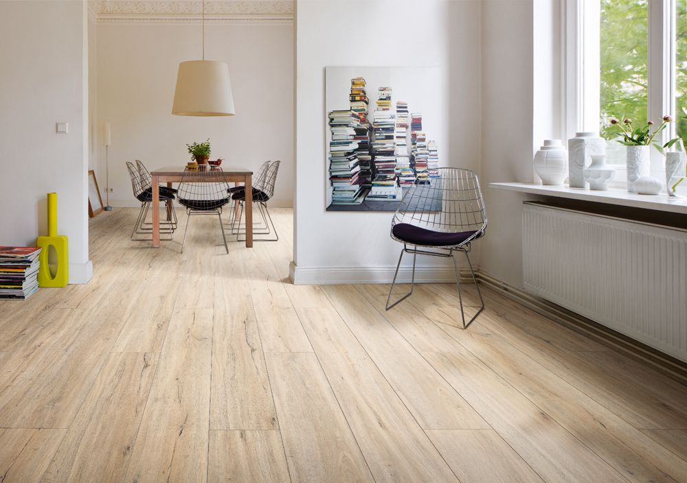 Marmoleum Click не только чрезвычайно прочен, но и прост в уходе. Верхний слой – Forbo Marmoleum – натуральный экологически чистый продукт. За ним находится слой водоотталкивающего HDF (древесноволокнистая плита высокой плотности) и задний слой из пробки.