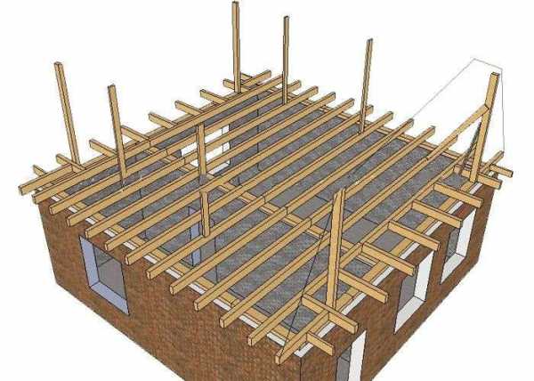 Наиболее простым каркас крыши будет для помещения, имеющего небольшие размеры. Для его строительства потребуются: две висячие стропильные ноги, затяжка, балки перекрытия, стойки и боковые стропила.