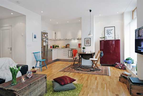Самое главное достоинство современного интерьера маленькой квартиры– это антикварные декоративные предметы декора и мебели, которые дизайнер добыл из своих путешествий.