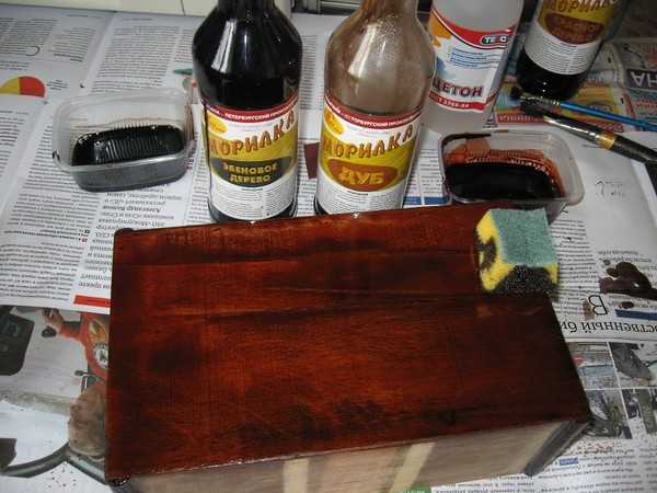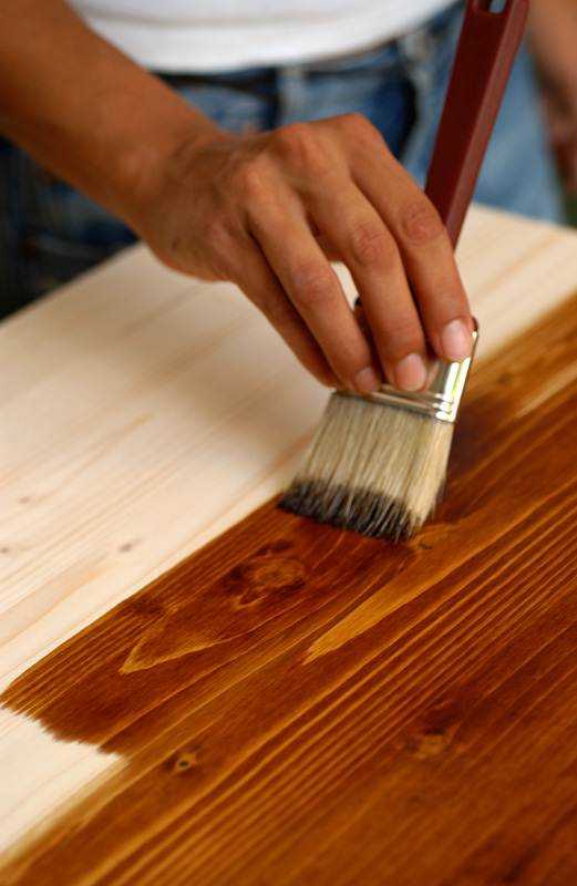 Обработка мебели морилкой.