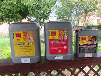Противопожарная пропитка – водный состав глубокого проникновения. Возможны альтернативные формы выпуска: лаки, эмали, краски, обмазки и порошкообразные средства. Для обработки внешних элементов задействуют атмосферостойкие материалы (Сенеж Огнебио, Огнебио Проф), внутреннюю деревянную отделку и элементы каркаса покрывают экологичными растворами.
