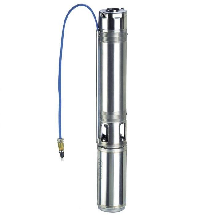 Лучший насос для скважин 2022 года среди погружных моделей ─ Denzel DWC-4-80. При мощности 1500 Вт он перекачивает за час 5700 л жидкости. Параметры напора и глубины погружения совпадают и составляют 80 м. Производительное оборудование не требует серьезных затрат при бурении скважины. Диаметр корпуса ─ 102 мм. Он изготовлен из прочной нержавеющей стали, которая максимально защищает внутренние узлы. Асинхронный маслозаполненный двигатель рассчитан на долгий срок службы. Внедрена качественная защита от перегрузок. Специальные проушины обеспечивают надежное размещение оборудования на большой глубине и его легкое извлечение. Насос поставляется с выносным блоком, где расположена кнопка запуска, а также реализована дополнительная защита двигателя от перепадов напряжения.