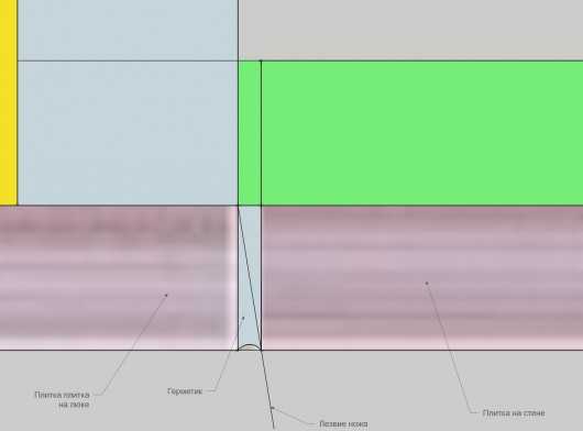 - После прорезки открыть люк со стороны петли, срежьте и удалить герметик со стеновой плитки как показано на Рис. 12.