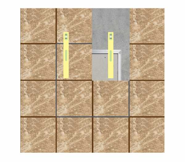- Прорисовать раскладку плитки на той стене куда устанавливается люк невидимка, чтобы не было узких подрезов плитки по краям стены;