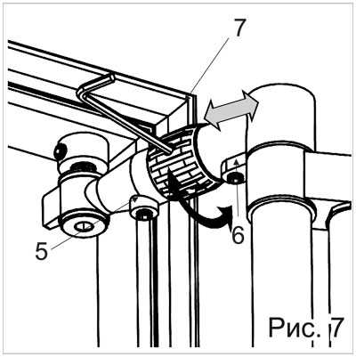 - С помощью ключа на одном из регулировочных рычагов ослабить фиксирующие винты 5 и 6 (рис. 7)