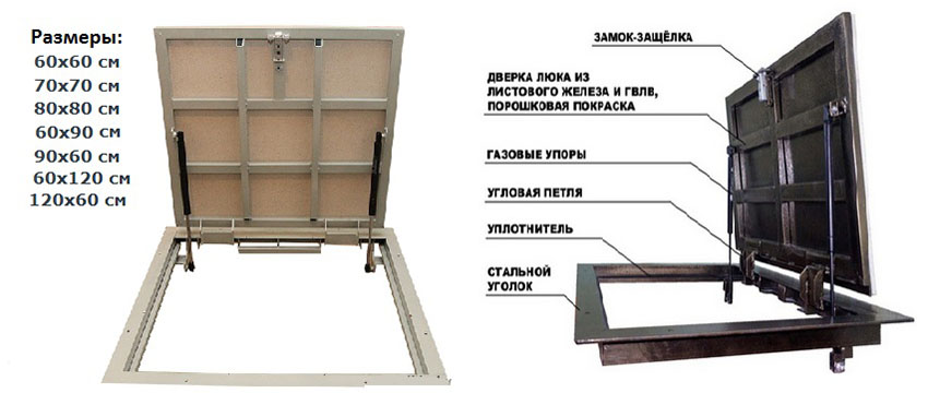 По высоте люк должен быть равен чистовому и черновому покрытию, что достигается благодаря многослойности. Такая конструкция обычно обладает небольшим весом, благодаря чему ее можно крепить на обычные петли.