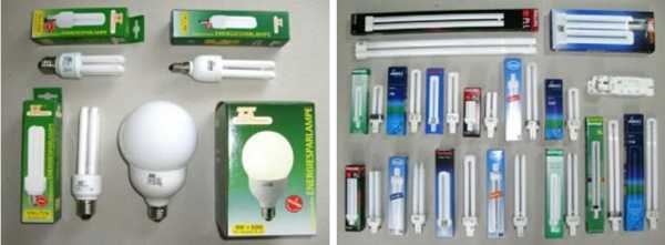 Ассортимент ламп зарубежного производства гораздо шире. Ведущие европейские (Osram, Philips), американские (General Electric, Sylvania) и китайские фирмы делают лампы с дважды-, трижды- и четырежды изогнутыми трубками (4, 6 и 8 светящихся участков), плоские типа 2D, спиральные и др. Фактически каждый типономинал ламп имеет свой особый цоколь, исключающий возможность включения ламп какой-либо одной мощности в арматуру, предназначенную для ламп другой мощности.