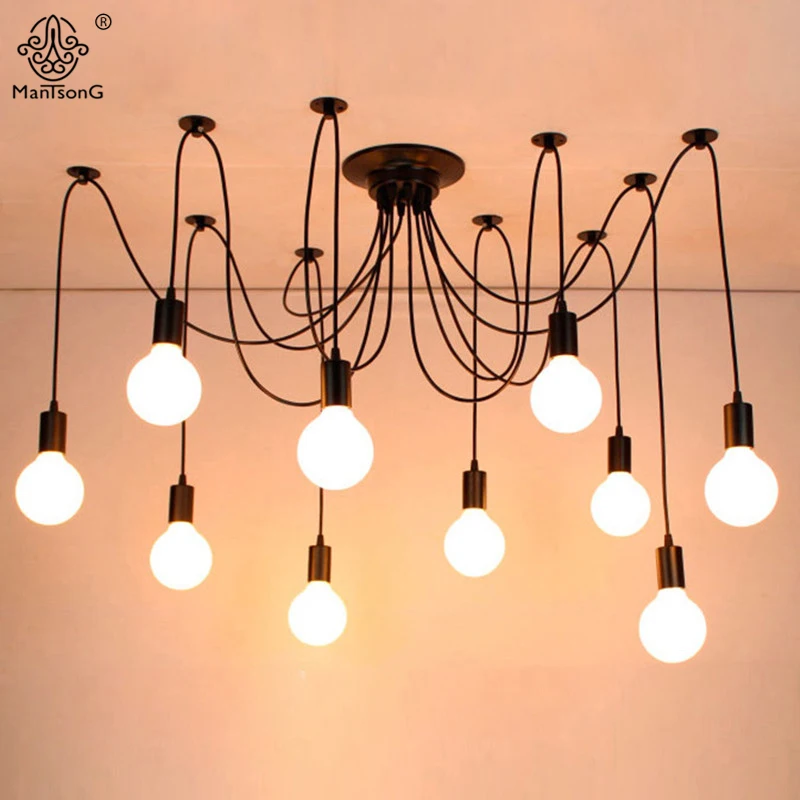 В этом случае конструкция позволяет варьировать высоту установки светильника. Это может быть система противовесов или колен (аналогичное решение применяется в настольных лампах). - Гибкий подвес. Каждый из рожков люстры, размещенный на гибкой арматуре, можно направить в любую сторону, высветив элемент декора или рассеяв свет о поверхность потолка.