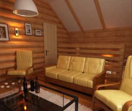 При оформлении интерьера комнаты отдыха в бане соблюдают несколько определенных условий и правил. Так, для создания красивого дизайна используют отделочные материалы, которые не содержат металлических деталей и являются влагостойкими.
