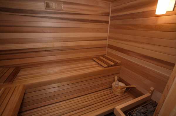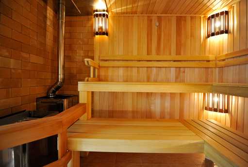 Совет! Обратите внимание, на фотографии все светильники в парилках закрыты щитами или решетками из дерева. Таким образом, исключается даже случайное прикосновение к раскаленной поверхности.