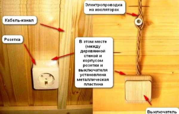 - Если же помещением выполнено из несгораемых материалов, то скрытая проводка прокладывается, как и в квартире. Открытая проводка для помещений из дерева монтируется так же, как и парной.