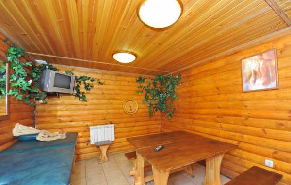 - В комнате отдыха бани правильным будет разместить и несколько розеток. Они могут потребоваться для подключения телевизора, акустической системы, чайника, фена или просто для подзарядки мобильного телефона.