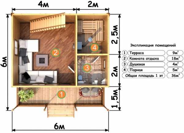 Важно! Размеры комнаты отдыха определяют по габаритам бани. Минимальной считают площадь, которая равна 10 кв. м.