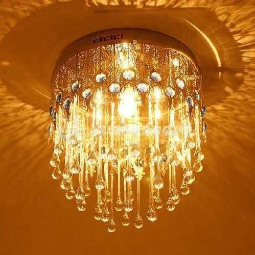 - Если вы выбираете люстру тарелочного типа, то она должна быть без металлического основания. Оно будет нагреваться в процессе работы, что является опасностью для натяжного полотна. Если светильники располагаются слишком близко к потолку, то следует обращать внимание на то, чтобы они были созданы из материалов, которые не нагреваются.