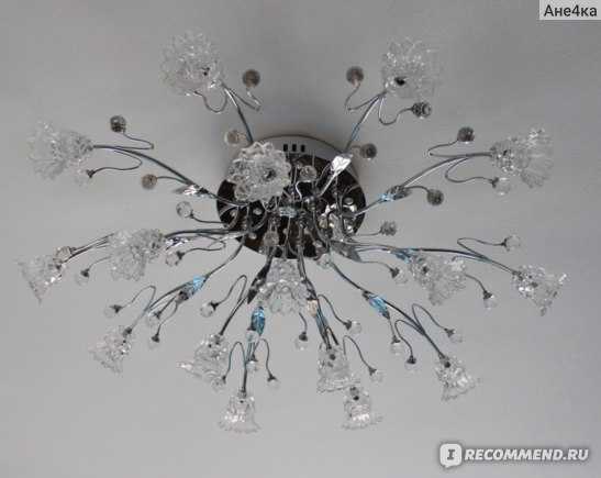 Я искала такую люстру, чтобы не свисала с потолка — они у нас не высокие. Выбрала эту. Очень изящная модель